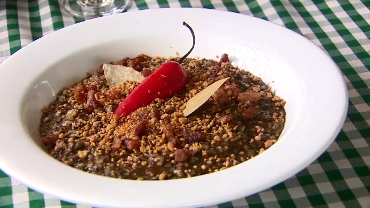 Um prato feito com folhas de mandioca cozidas, carnes de porco e boi, linguiça, alho, cebola e pimenta. É servido com arroz branco e farinha d’água.